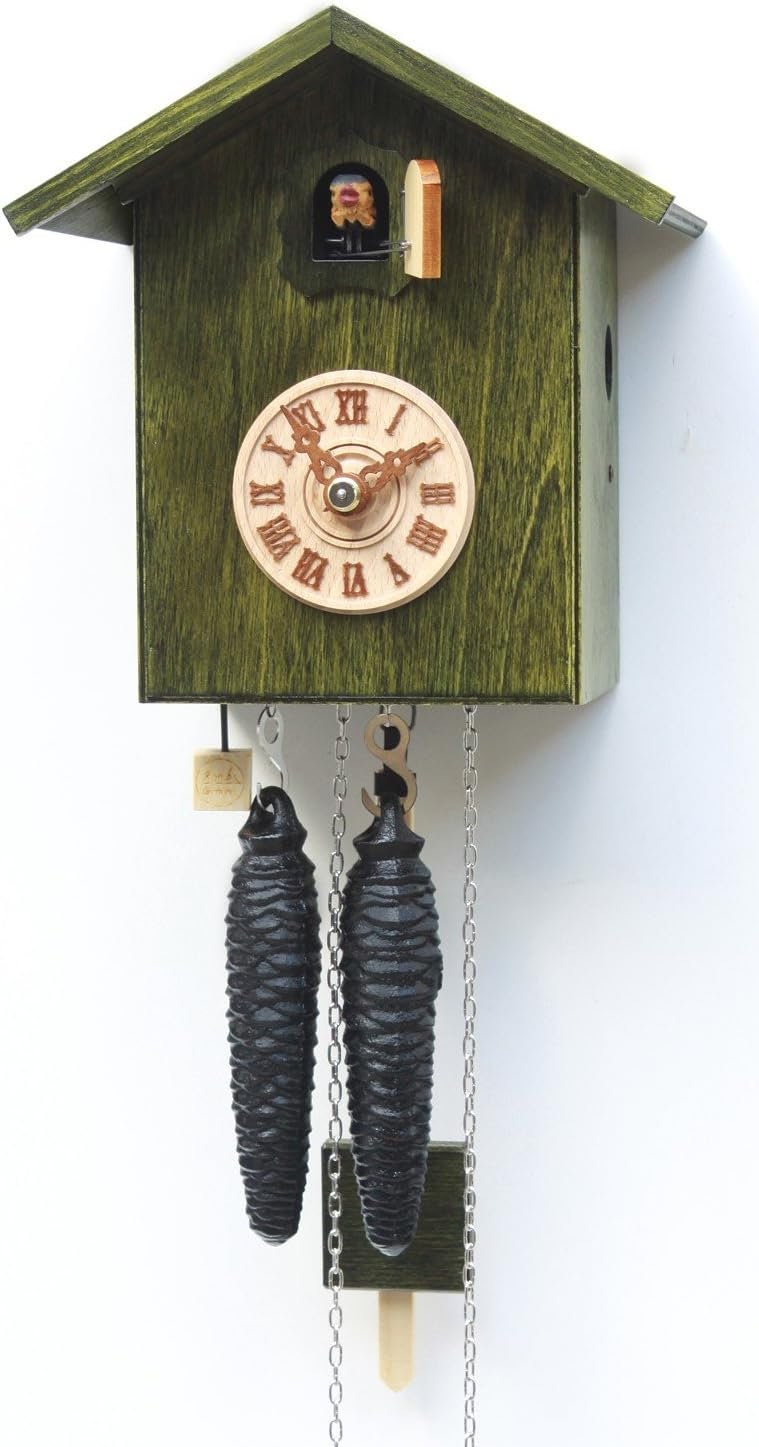 Introducing our rustic green Cuckoo Clock with black pinecones, a captivating fusion of contemporary design and traditional craftsmanship, handcrafted to perfection in the heart of the Black Forest. This cuckoo clock embodies the highest standards of quality and showcases a red cuckoo, adding a touch of cool art to any living space.