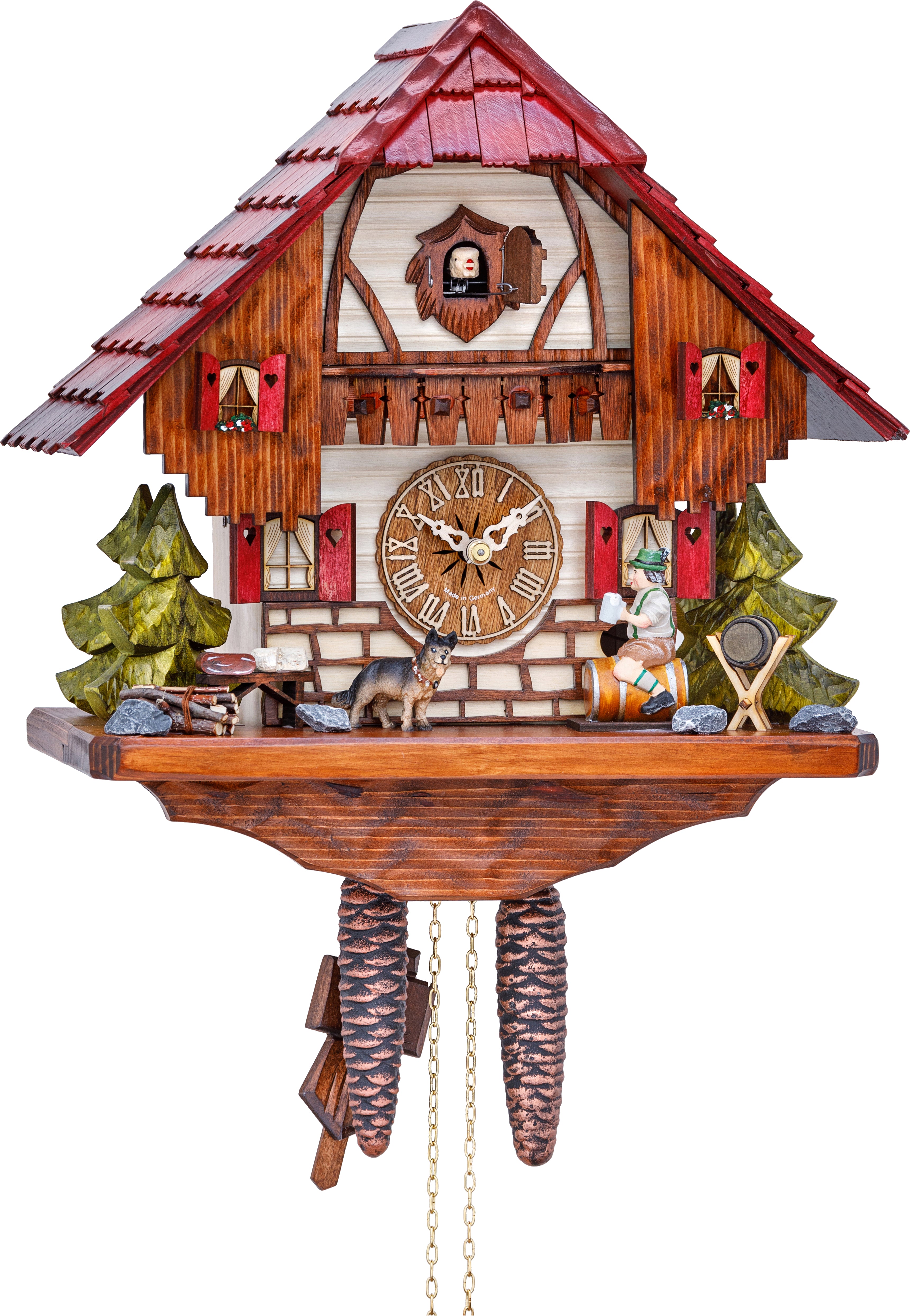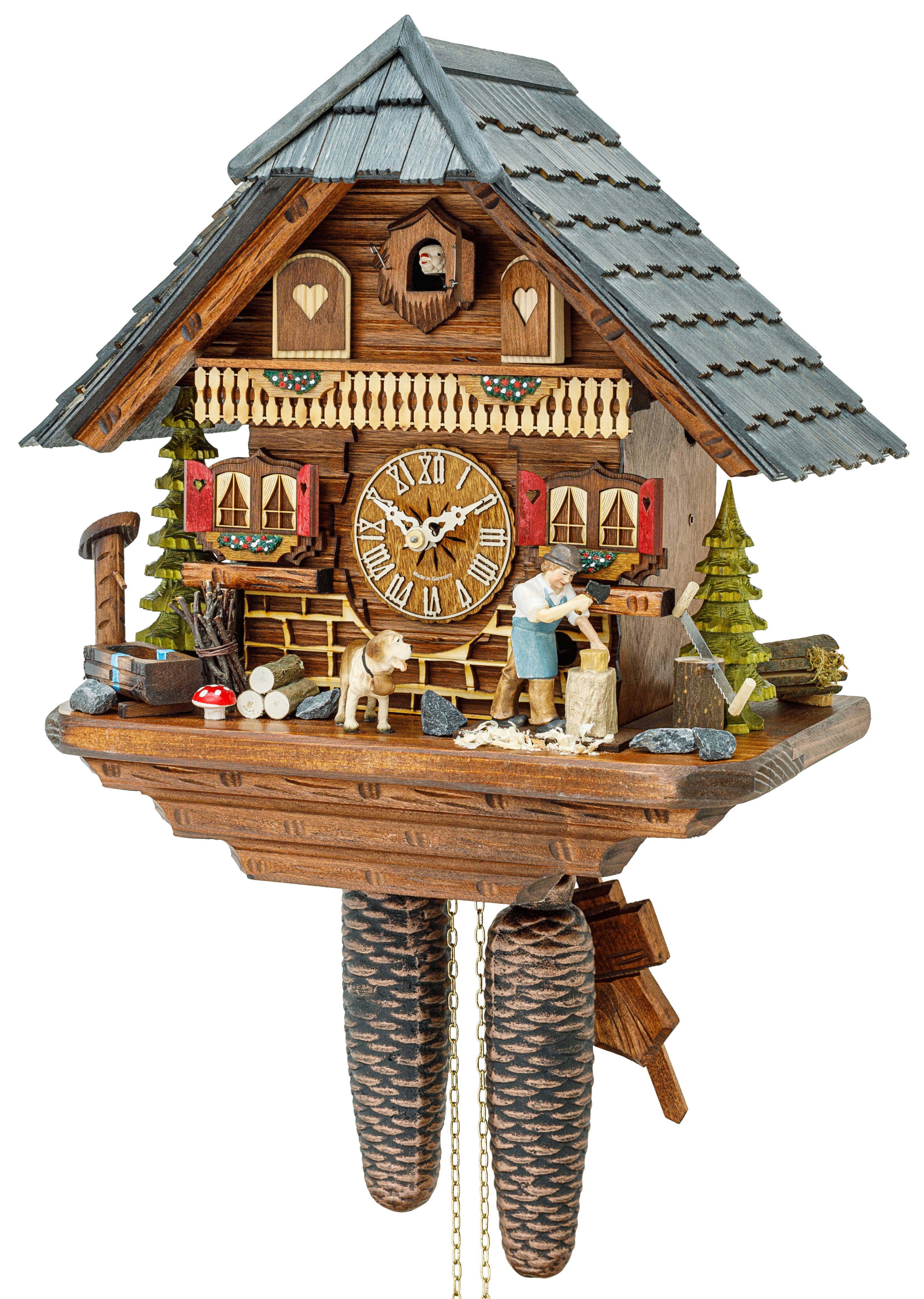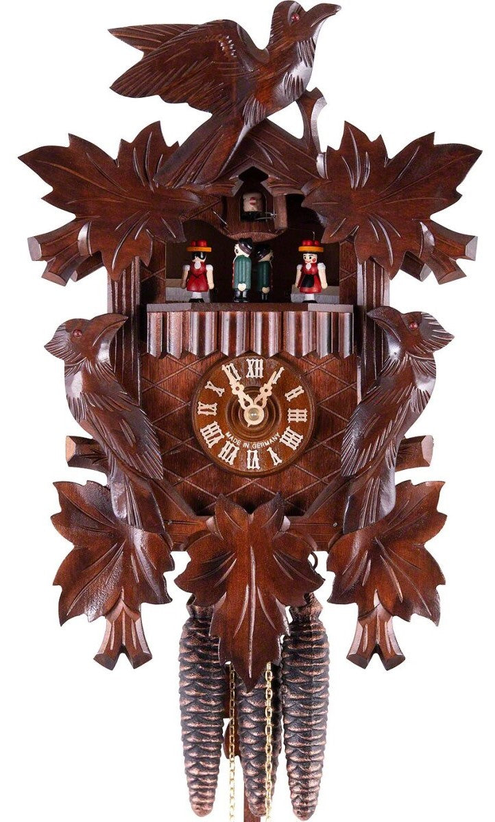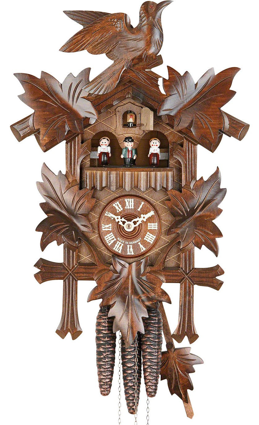 Beautiful and unique pieces of workmanship made in Germany: Every Black Forest cuckoo clock from Cuckoo Clock Market is hand-carved and comes with a certificate of authenticity.Thanks to the mechanic clockwork you never loose track of time, Enjoy the wonderfulmelodies and the cuckoos' call every half and full hour while watching the filigree crafted figures moving during the day.