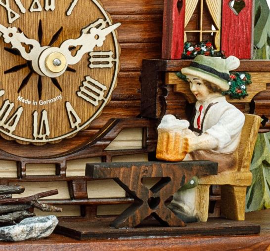 Cuckoo Clock - Chalet-Style - 1-Day Movement with a Moving Beer Drinker - 15