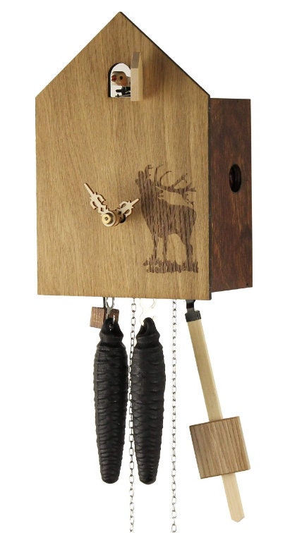 ROMBA BIRD HOUSE with a deer motif is a modern mechanical cuckoo clock with an elegant design.
